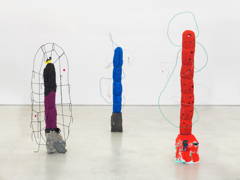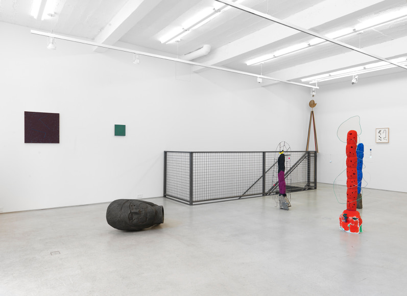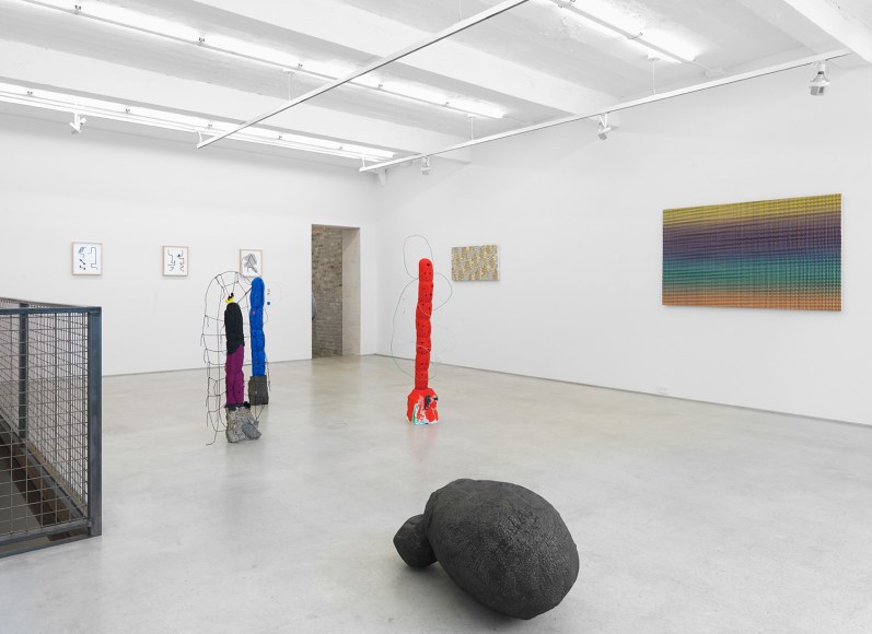 I like standing amongst Ohad Meromi’s beautiful, colloquially socialist figures which occupy the gallery’s Orchard Street window and I love trying to grok what seems like a freshly excavated bronze head that greets visitors alongside Sarah Canright’s paintings in the main space. Canright’s works are meticulous in color and scale, pushing us to gently investigate those relationships, while nearly inciting us to touch their fleshy surfaces. These are uniquely present paintings. Meanwhile, staring into Ara Peterson’s wall relief works is one of the more sublime pleasures one can afford oneself in today’s world. They are rooted in wave forms and replete with utterly disorienting color and pattern shifts that demand surrender.