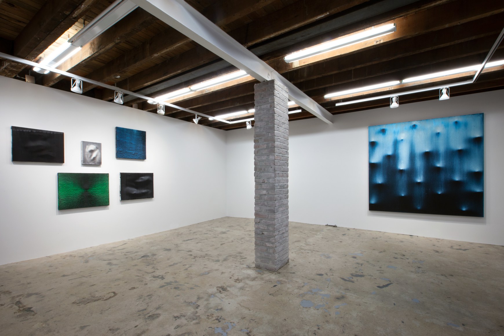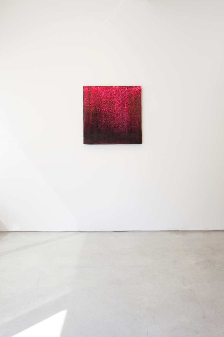 Freeman's paintings radiate and glow, glitter and move, with an unearthly light while simultaneously absorbing light. This duality is common within Freeman's ephemeral work, with this ever-evolving quality of their surfaces. The paintings react optically to color and light surrounding them, conditional on environment and angle in which they are viewed.
