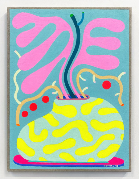 For this special presentation, Chiao and Frezza feature a selection of new paintings, grid sculptures and pulp paintings, from their ongoing catalogue of various works.  Combining their minimal, yet playful gestures with organic form and representation, this collection of new works captures the artist's highly recognizable style and visual symbolism.  With hints of minimal abstraction, Chiao and Frezza create the stunning essence of colorful arrangements by brilliantly utilizing line and color with remarkable precision and sophistication.  Through their almost reductive like process, they’ve created a series of works that at their core carry a wonderful lightness to them, capturing the playful and gentle barrida from one form to the other, and one vibrant color to the next.