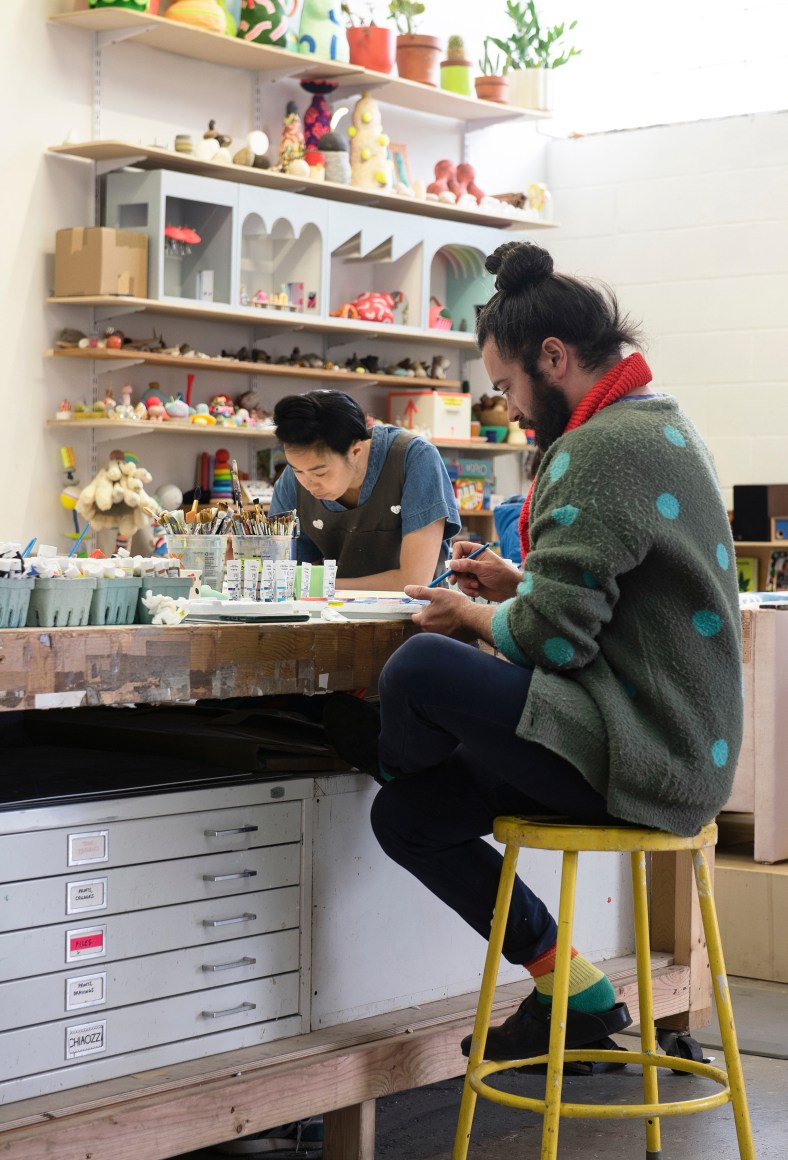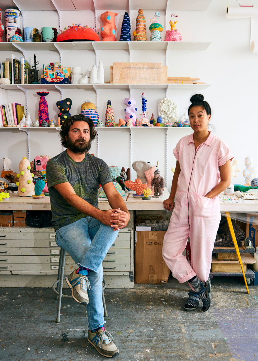 Chiaozza (rhymes with “wowza”) is the collaborative multidisciplinary studio of Adam Frezza & Terri Chiao. Frezza & Chiao have had solo shows at Wave Hill in The Bronx, NY; Vox Populi in Philadelphia, PA; Long Island University in Brooklyn, NY; Owen James Gallery in New York City; Cooler Gallery in Brooklyn, NY, and Westchester Community College in Valhalla, NY. The studio has installed public artworks in New York City; Gainesville, FL; Boston, MA; Cleveland, OH; and Beijing, China. In 2017, they installed an acre-spanning sculpture garden with 32 large-scale works for the Coachella Arts & Music Festival in Indio, CA. The artists live and work in Brooklyn, NY.