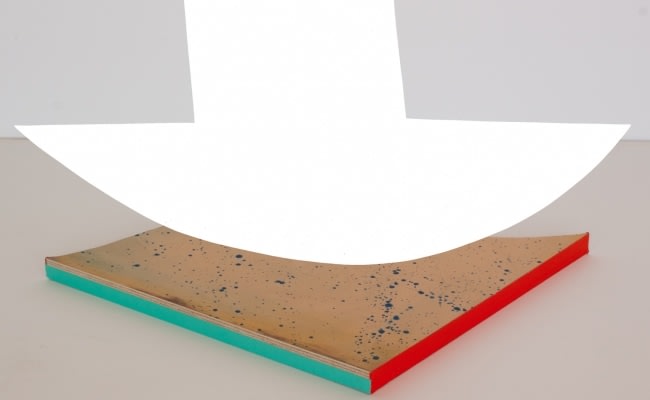For this exhibition Dilworth has created works in a variety of mediums including UV print, oil on cotton fabric, acrylic, wood, leather, and plastic. Materials and shapes reappear throughout the exhibition, at times used in drastically different ways. Though the works are formally varied, they collectively highlight Dilworth's sensibility and his open ended approach to art making. Within Dilworth's practice, objects and ideas exist in a state of flux. In some cases, one object might transition through multiple mediums: for instance beginning as a sculpture, then transitioning into a photograph, then back to a sculpture. In other cases, what was conceived initially as the end product might be discarded, and items peripheral to it’s making, such as scraps of fabric, wood, or plastic, might take it’s place.