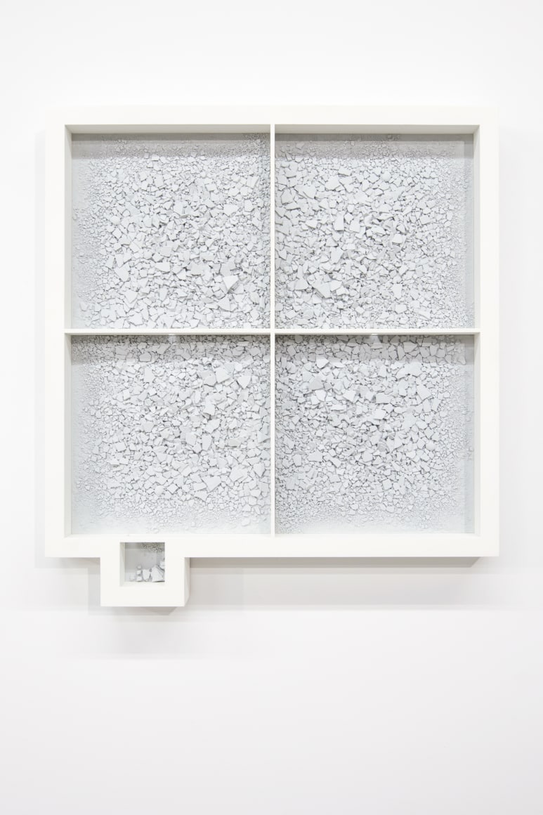 Robinson is known for creating thoughtfully fabricated theoretical environments, transforming and engaging the gallery space. His recent solo exhibitions presented themselves as installation, but with an ambiguity as to whether the objects were dependent on their surroundings or could exist autonomously. Discrete Pieces focuses on stand-alone sculptural works, such as a stylized mailbox carefully crafted in powder blue and a container ship made into a sleek horizontal sculpture, though the artist continues to question if the works are or ever could be entirely isolated objects. Several of the works are based on dividing structures - walls and fences - which attempt to separate one part of the world from another. Within this exhibition Robinson finds that his questions on existence relate to the possibility or impossibility of segmenting reality and drawing distinctions.