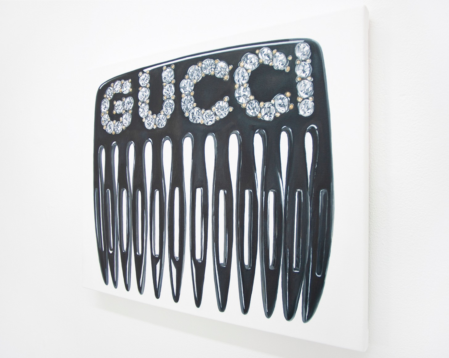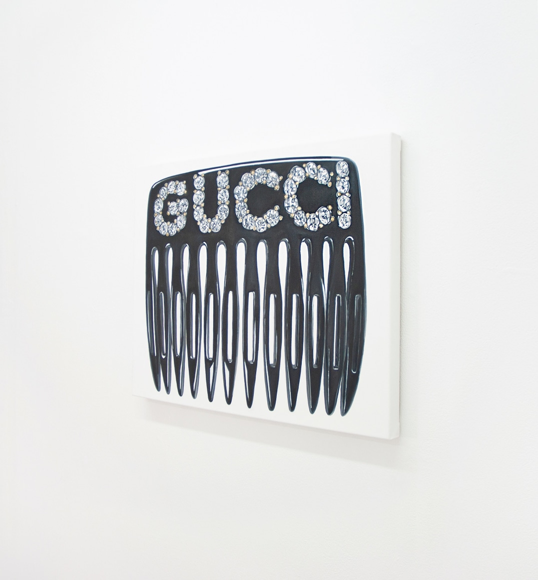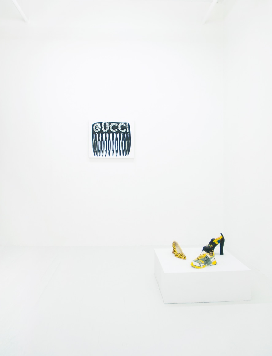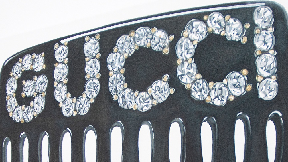 Within this new work by Rojas, she captures her unique style of design, fashion and fun. Untitled (Gucci Hair Comb) makes for a particularly special work by Didi, detailing an almost James Rosenquist-esque portrayal of the iconic Gucci hair comb. Rojas’ technical brilliance of detail and composition combine together to create a painting charged with realism and expand upon the meticulously organized popular culture aesthetic formed by the artist.