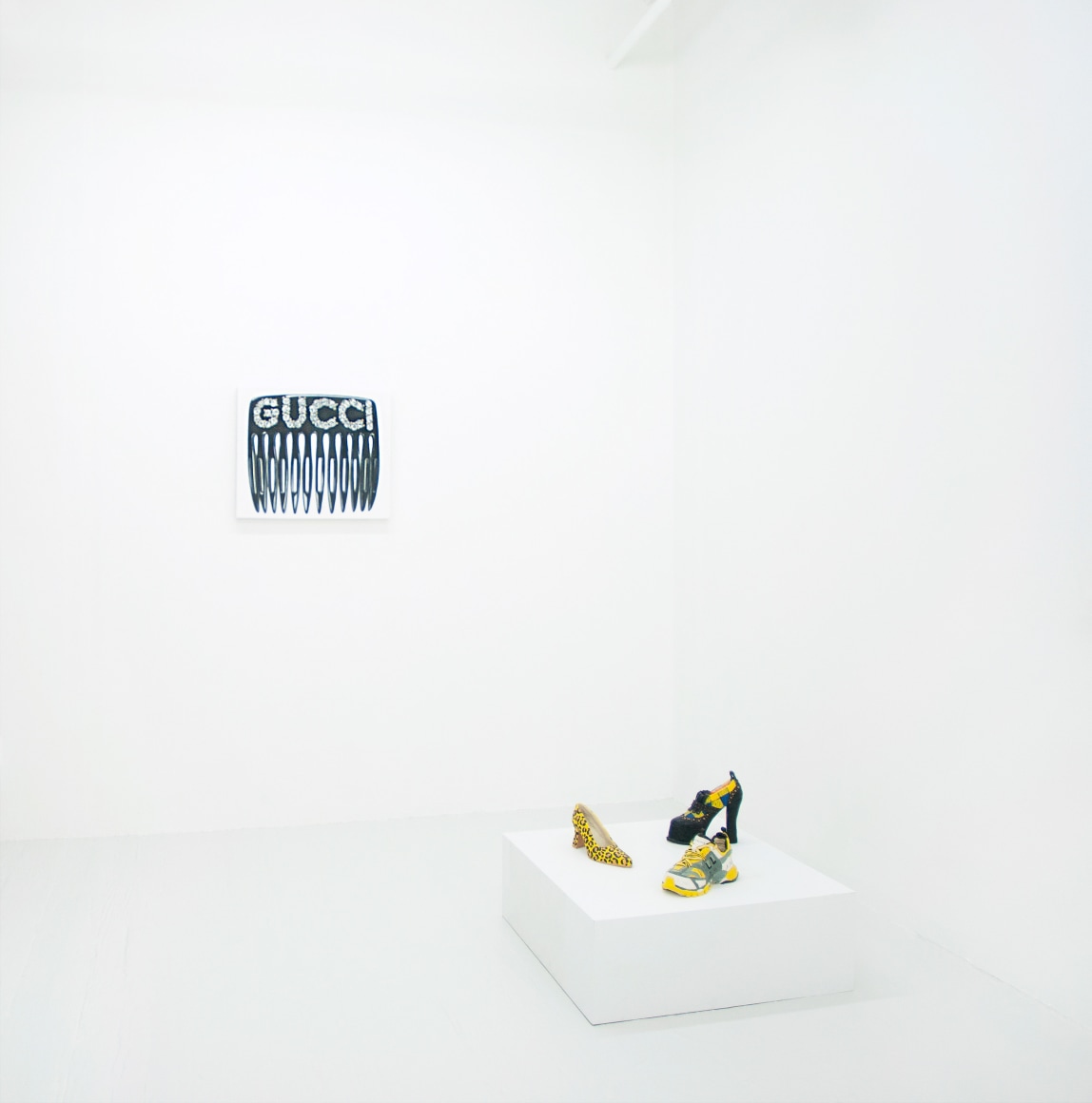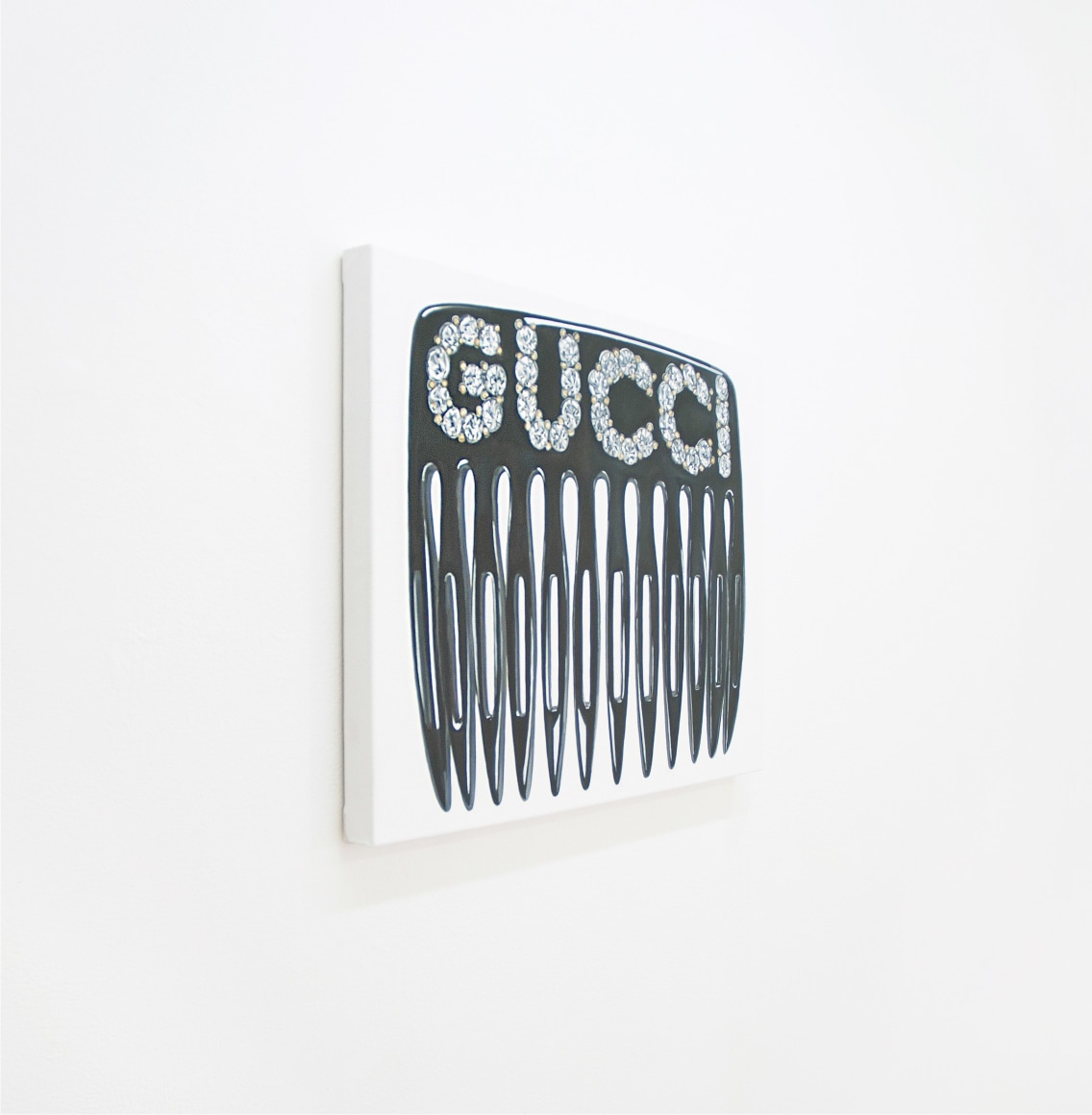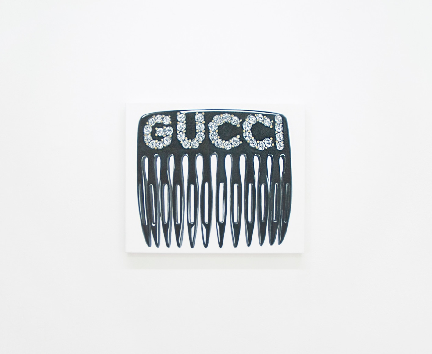 Within this new work by Rojas, she captures her unique style of design, fashion and fun. Untitled (Gucci Hair Comb) makes for a particularly special work by Didi, detailing an almost James Rosenquist-esque portrayal of the iconic Gucci hair comb. Rojas’ technical brilliance of detail and composition combine together to create a painting charged with realism and expand upon the meticulously organized popular culture aesthetic formed by the artist.