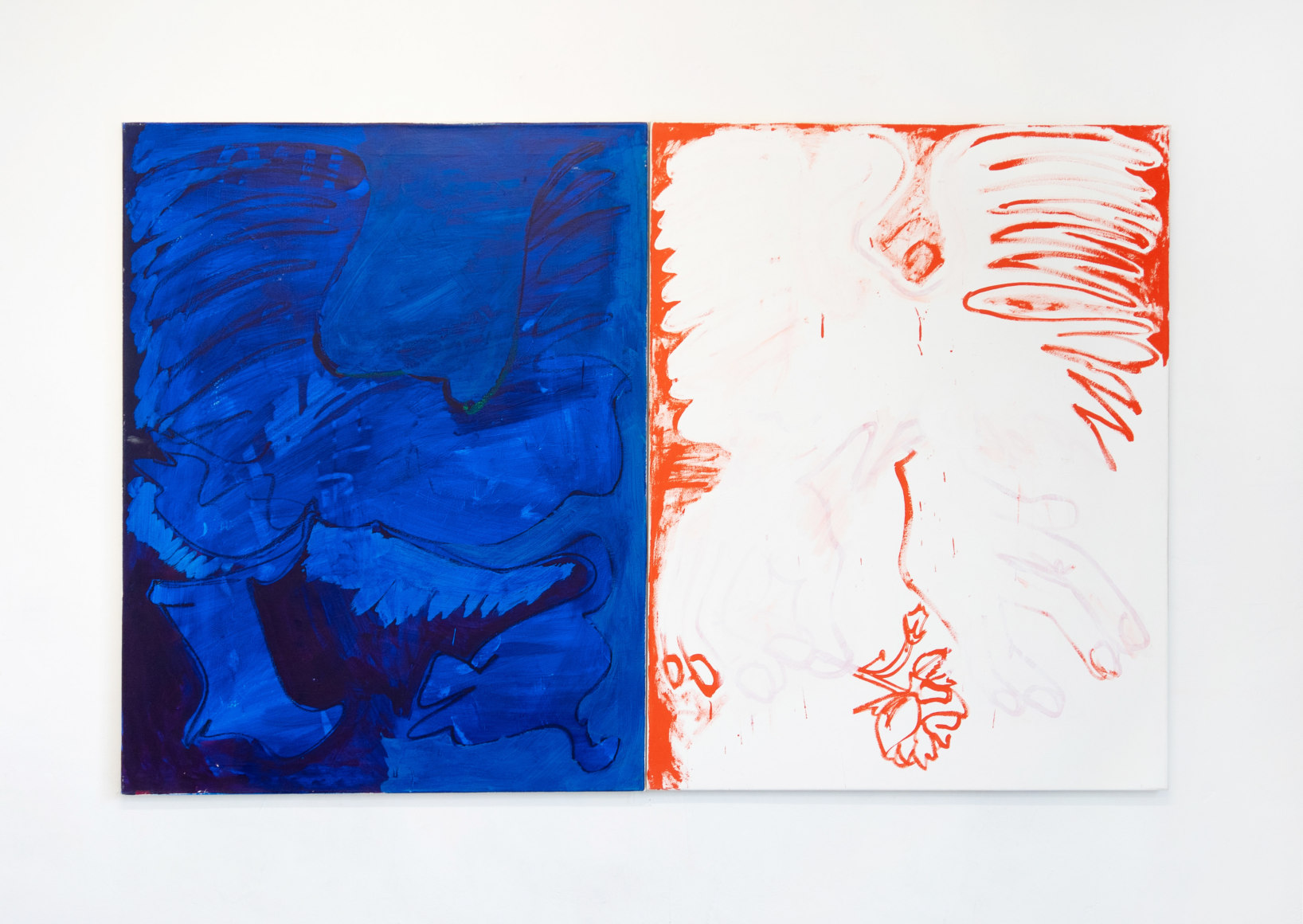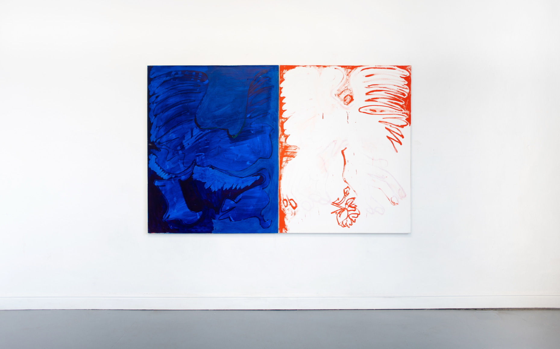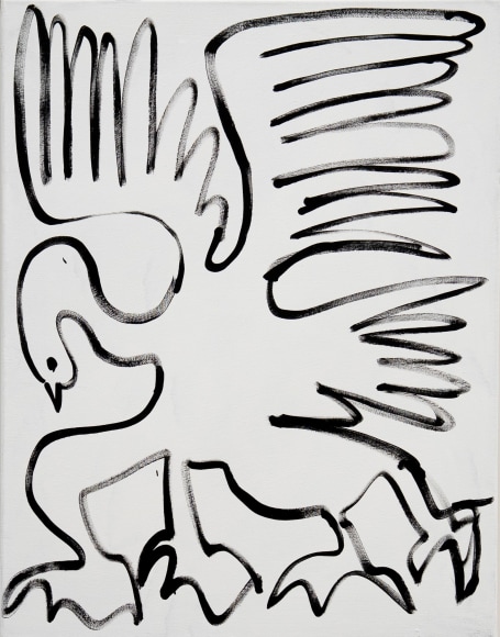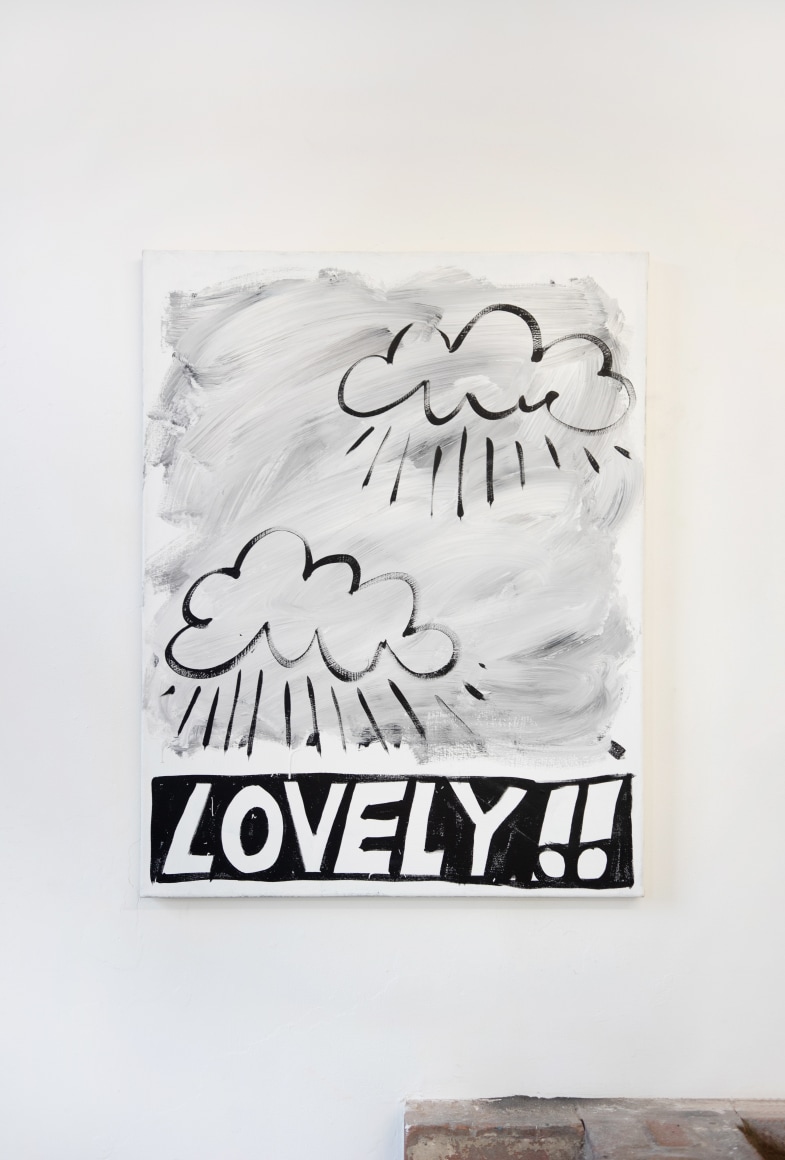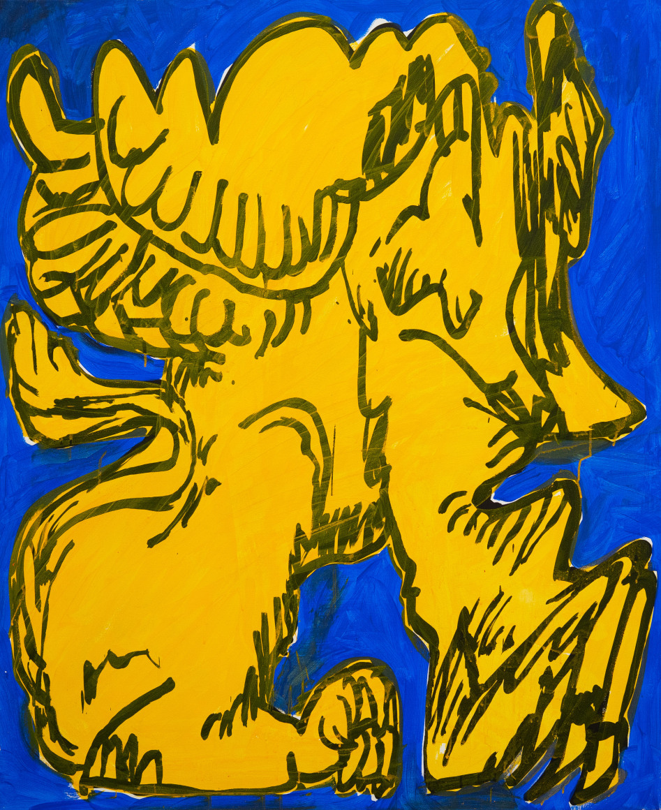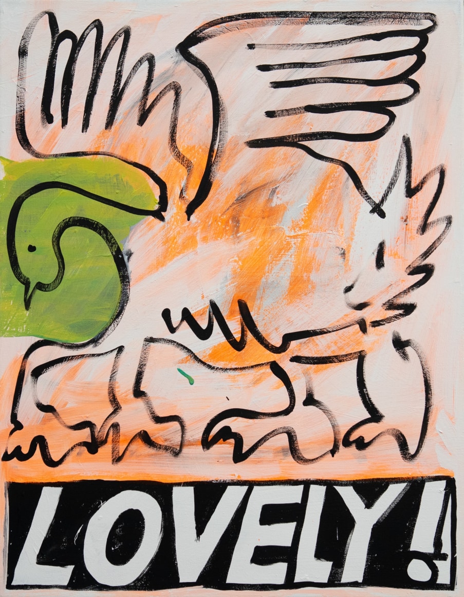 Hurlock symbolically disrupts the conventional display within a gallery through his extension into the hallway, framing his work among the deconstructed architecture of the space. Scrawled below the naïve depiction of a swan, a sardonic “lovely” sets the tone of the exhibition. Confined by the borders of their canvas, heraldic beasts adorn the walls of the gallery revealing and obscuring forms through their application of paint. At the core of these paintings, lies a discussion about the impact of these symbols, and what they signify to our culture and history today.